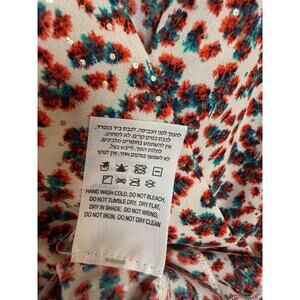 The Sabina Musayev Size LG Dress features a trendy design with tiered ruffles and short sleeves, making it perfect for a party or cocktail event. The dress is made of polyester material and comes in a vibrant multicolor palette. The V-neckline and wrap dress style add a touch of elegance, while the short length is ideal for the warmer seasons of summer, fall, and spring. Made in Israel, this dress is a stylish and eye-catching addition to any woman's wardrobe.