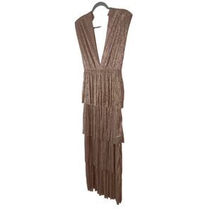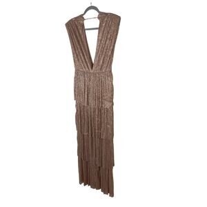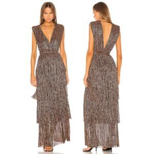 Sabina Musayev Skylar Gown Maxi Tiered Ruffle Whimsical Fairy Party Bronze Sz M