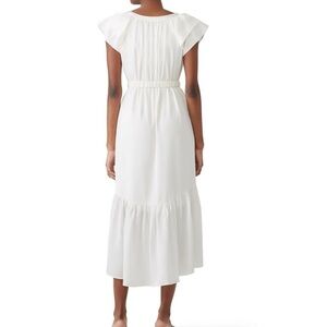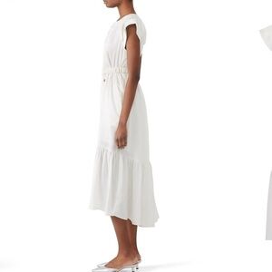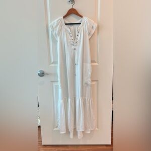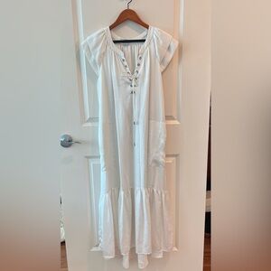 A lace-up neckline and short sleeves add playful allure to this sweet cotton dress by Sabina Musayev that flows elegantly with a ruffle-tiered skirt.