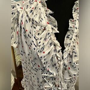A playful confetti print makes this ruffly and romantic dress by Sabina Musayev a party in Chiffon.