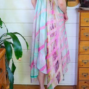 Sabine by Floreat Anthropologie Pastel Beaded Dress in Sage and Pink