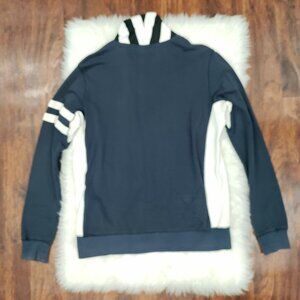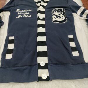 Sabit NYC Black And White Striped Trim Navy Blue Button Front Cardigan Men's XL, Some marks by the button button missing