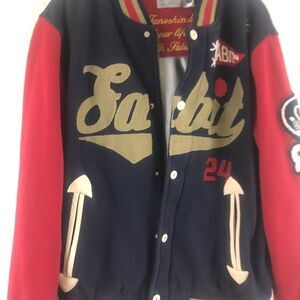 Sabit NYC Shake The Block Varsity Jacket in navy and red size L