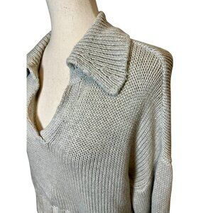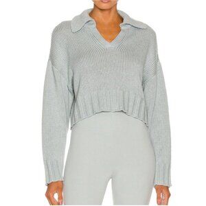 Sablyn Julie Collared Knit Sweater Light Blue Gray Medium Cotton Silk Cashmere
