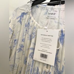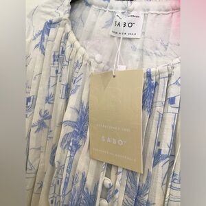 New with tags, 2pc Leta Top and matching shorts, both in the Santorini Shade. Puffy sleeves, beachy themed print, buttons in front for top. flowy fit w/ draw string closure and double lined for bottoms. breezy fit with front pleat and button detail. Perfect for casual summer wear.