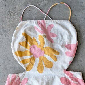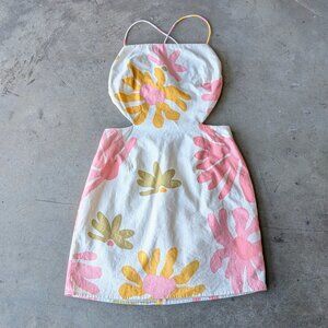 Sabo Backless Summer Dress Pink Yellow Green Floral Tie Back Mini Dress size XS