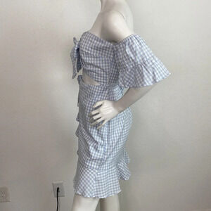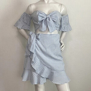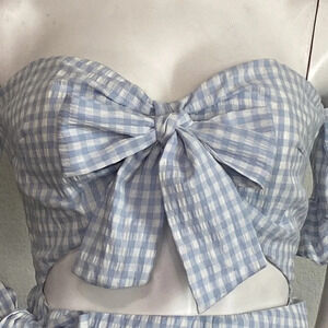 Sabo Blue/White Zita Gingham Front Bow Cut Out Coquette Girly Mini Dress Size L