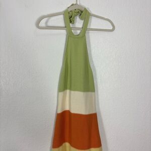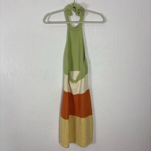Excellent condition Sabo Colorful Green, Cream, Orange, and Yellow Knit Colorblock Halter Mini Dress Size Small 4