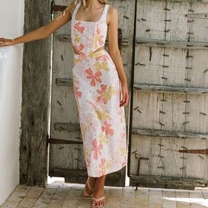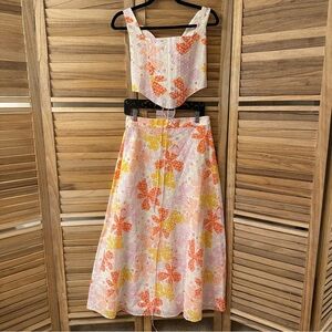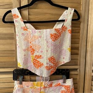 Skirt and Top set. o, the Keara Midi Skirt is made from a high quality cotton broiderie fabric with our exclusive pollen print. It is a high waisted maxi style featuring a body skimming fit with a flared hem. Get the look and pair with the Keara Corset Top for your next event