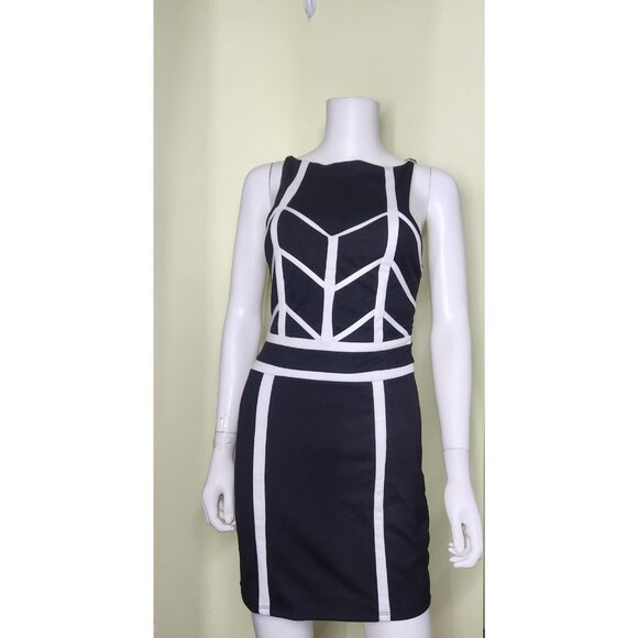 Sabo Skirt Mini Dress Womens 8 Black White Sleeveless Pencil Party Cocktail