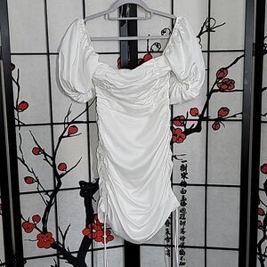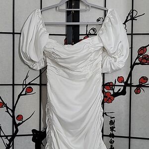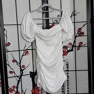 Sabo Skirt Ruched Mini Peasant Dress in White