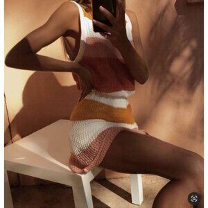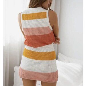 Sabo Skirt Sol Dress Crochet Stripe Mini Sleeveless Pink Orange Gold Medium