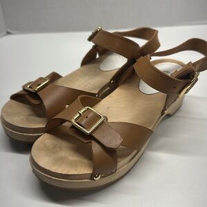 Sabot YouYou French Clog Sandals Open Toe Ankle Straps Wooden Tan Brown 38 US 8
