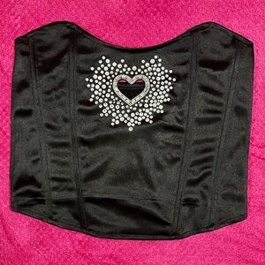 Sabrina Carpenter “Short and Sweet” Tour inspired Black heart cut-out bling corset top
