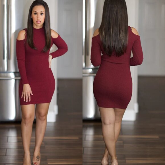 Sabrina Cold Shoulder Mock Neck Mini Dress - Burgundy