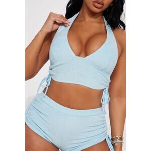 Sabrina Halter Terry 2 Piece Bikini - Light Blue Size 2XL