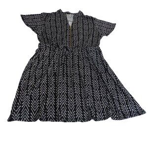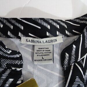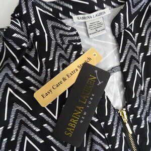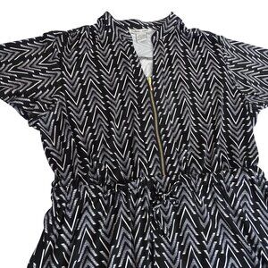 Sabrina Lauren Black White Chevron V-neck Dress Women Size L Cinched Waist NEW