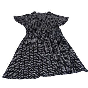 Sabrina Lauren Black White Chevron V-neck Dress with Cinched Waist