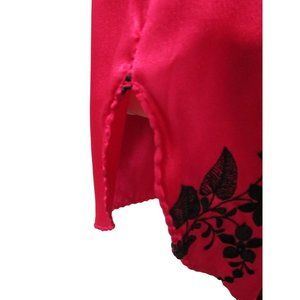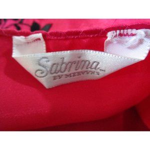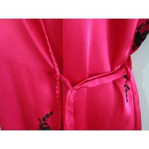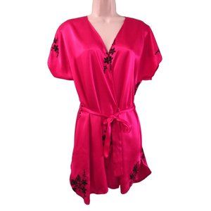 Sabrina by Mervyns Raspberry Black Embroidered Flower Short Robe Large GUC