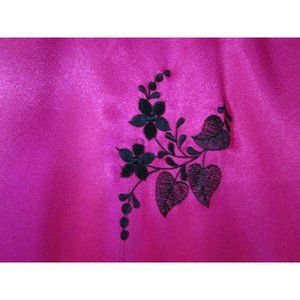 • Raspberry Satin with Black Embroidered Flowers and Foliage