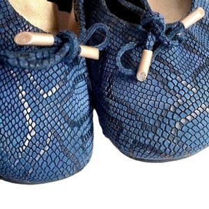Sabrinas Blue Leather Snakeskin Ballet Ballerina Flats Shoes Slip-On, Womens Size 38 EU / Size 7.5