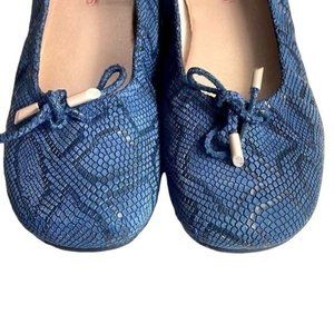 Sabrinas Blue Leather Snakeskin Ballet Comfort Flats Shoes Slip-On Size 38