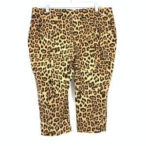 Sabrinas Cropped Pull On Pants Womens Size Large Leopard Print Stretch Brown Tan