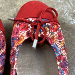 Sabrinas Red and Multicolor Floral Ballet Flats Size: 38 (7.5-8)