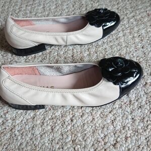 Sabrinas ivory napa leather & black flower ornament shoes size 37