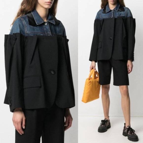 Sacai 21-05517 Mixed Media Blue Denim Jean Jacket Black Wool Sz 1