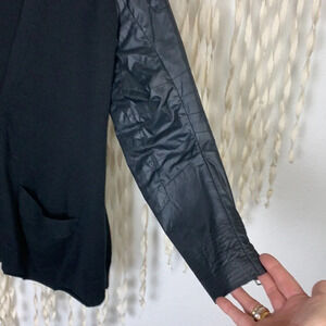 Sacai Black Button Down Cardigan with Quilted Nylon Sleeves and Wrist Zippers