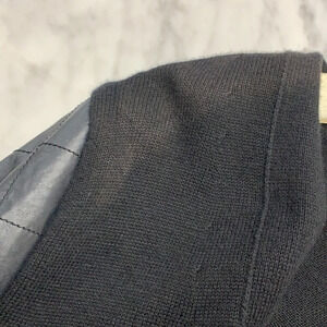 Sacai Black Button Down Cardigan with Quilted Nylon Sleeves and Wrist Zippers