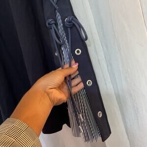 Sacai Shirt Dress Striped Lace Up Pleats size 2 cotton navy blue made in Japan