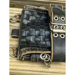 The Sacchetto by Tokyobay Biker Themed Black Mini Crossbody Bag is a stylish and edgy accessory perfect for any biker enthusiast. Made of distressed leather, this 4x6 inch bag features a magnetic closure and silver hardware accents. The black exterior and lining, along with the biker theme, add to its cool and rugged appeal. The mini size and crossbody style make it practical for on-the-go use, while the black leather handle/strap adds a touch of sophistication to the overall look. Ideal for both men and women, this Tokyo Bay Sacchetto Biker bag is a must-have for anyone looking to make a bold fashion statement.