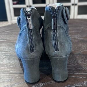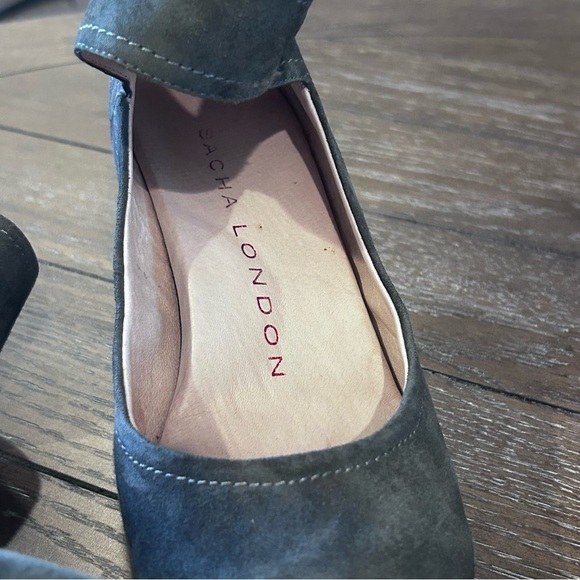 Fantastic condition Sacha London Suede Ladies Pump - 3" heel. Strap around ankle with Suede decorative button and Pewter zipper up back with signature logo.