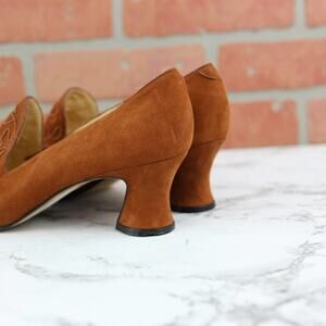 Sacha London Rust Brown Suede Leather Retro Embroidered Spool Heels Size 6.5