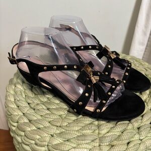 Sacha London Zoe Black Suede Gold Studs Strappy Low Wedge Comfort Sandals NWOB