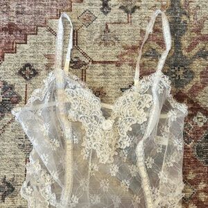 Sachet vintage White Lace Teddy Sachet sz L bridal Y2K sheer embroidered NWOT