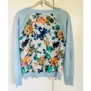 Sachi +Babi Wool Sweater Top Sheer Floral Print Blue Size 4 Quiet Luxury
