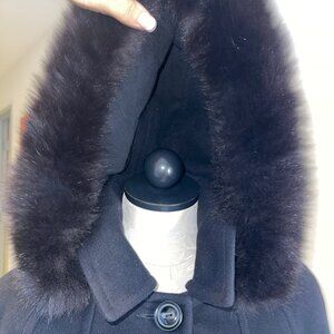 Detachable fox fur trimmed hood
