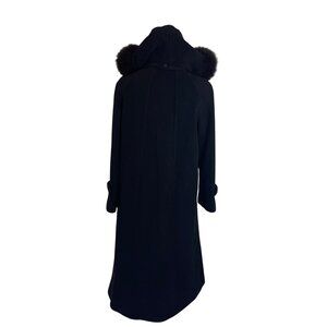 Sachi Collection Vintage Womens Coat Size Medium Black Fur Trim Hooded