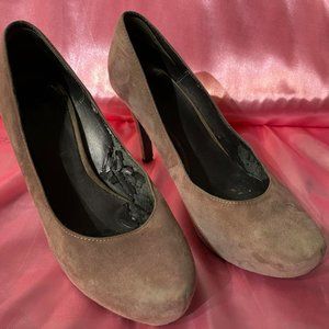 Rose Colored Almond Toe. Interior lining is deteriorating. 4" Heels. Rose Colored. Gently worn. Run a little big.