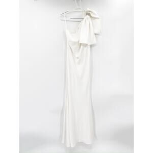Sachin & Babi Aubrey Ivory Satin Crepe Bow Shoulder Formal Gown Size 0