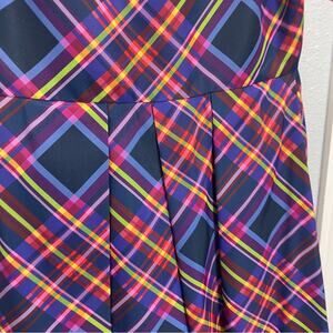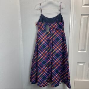 Sachin & Babi's charming Audra midi-dress showcases a bright plaid design, fitted with a scoopneck and fixed shoulder straps. Silhouetted with fit-and-flare style, this design evokes retro inspirations.