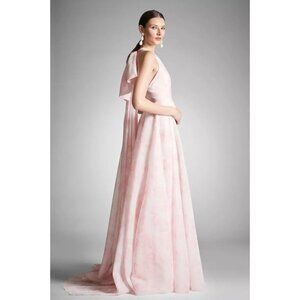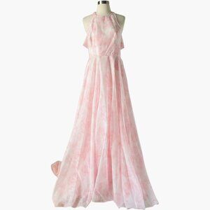 Keywords: Sachin & Babi gown, pink floral maxi dress, halter evening gown, formal dress with train, romantic floral gown, wedding guest dress, black tie gown, gala evening dress, ethereal maxi dress, bridesmaid dress, spring formal gown, statement backless gown, luxury designer eveningwear, pastel pink dress