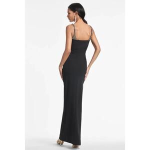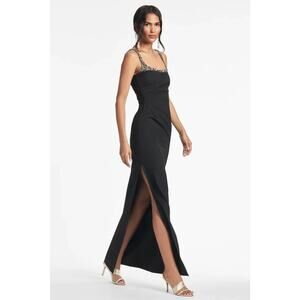 Sachin & Babi Black Sam Crystal Detail Body-Con Crepe Gown Ret $995 Sz:10