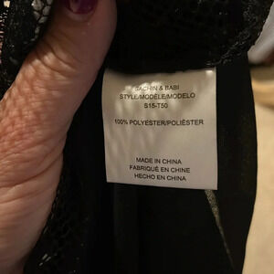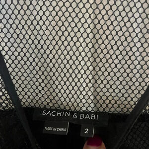 This is a used tank top by Sachin & Babi. it is black and white in colors and the back of the tank top consist of mesh material and see-through black polyester. The front of the tank top as shown in the pictures is black and white. And it has black and white threading you know stitching throughout the entire front of the tank top. There are no snags or flaws. I have tried to illustrate in the pictures. It is in excellent condition and I may use that term a lot with my items, but my items have to be in really good condition for me to purchase for you! All of my items are well cared for income from a smoke-free home. I am open to considerate offers. Thanks for taking a look and feel free to take a look at my closet!