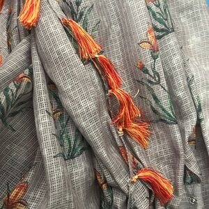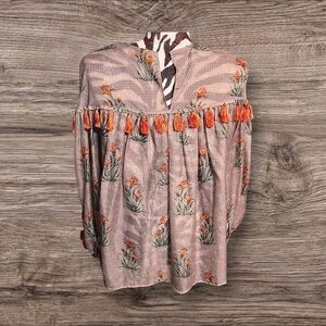 Sachin Babi Boho Tassels Long Sleeve Blouse Top Semi Sheer Floral Size XS. Approximate measurements armpit armpit 22 1/2 inches length 25 1/2 inches.
