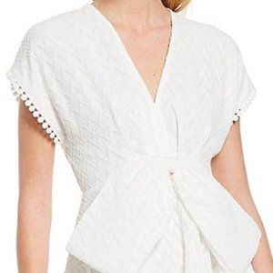 Sachin & Babi Bolton Chevron Bow A-Line Short Sleeve V-Neck Ivory Mini Dress 8