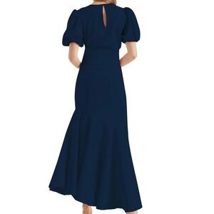 Keywords: Sachin and Babi Camila dress, navy evening gown, formal designer dress, wedding guest dress, puff sleeve gown, NWT gown size 4, luxury navy gown, black tie event dress